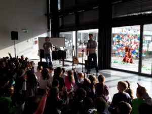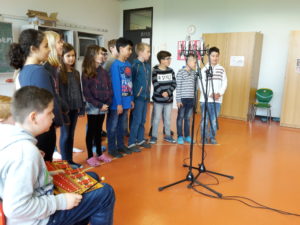 Aber nach den ersten Takten und der musikalischen Begleitung durch Torsten und Maike sangen alle Klassen ihre über Wochen geprobten Lieder souverän und schwungvoll ein.