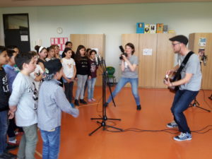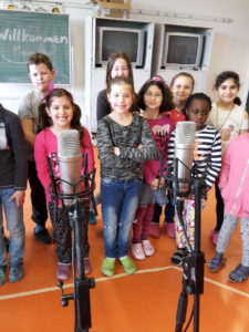 Nachdem Torsten und Maike vom Minimusiker-Team die Kinder im Forum begrüßt hatten, wurde es ernst. Ein bisschen nervös waren die Schüler schon, als sie das Tonstudio (unseren Musikraum) betraten und es „Achtung, Aufnahme!“ hieß.