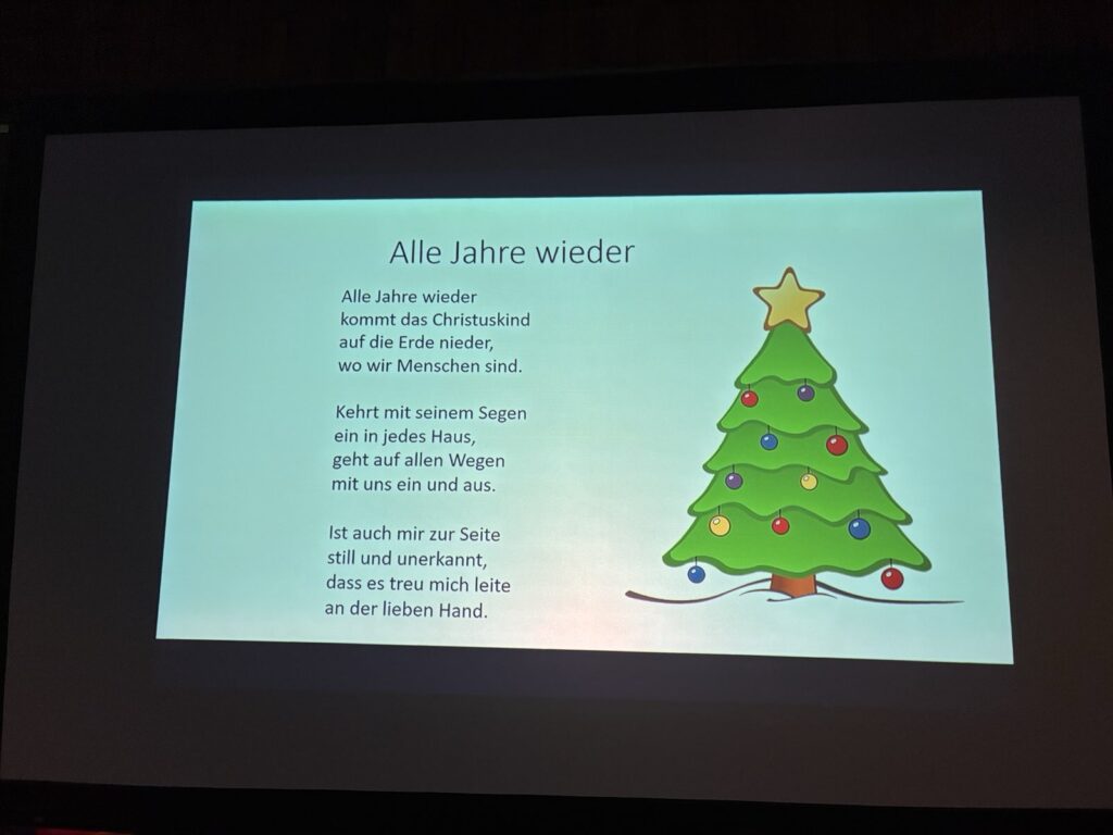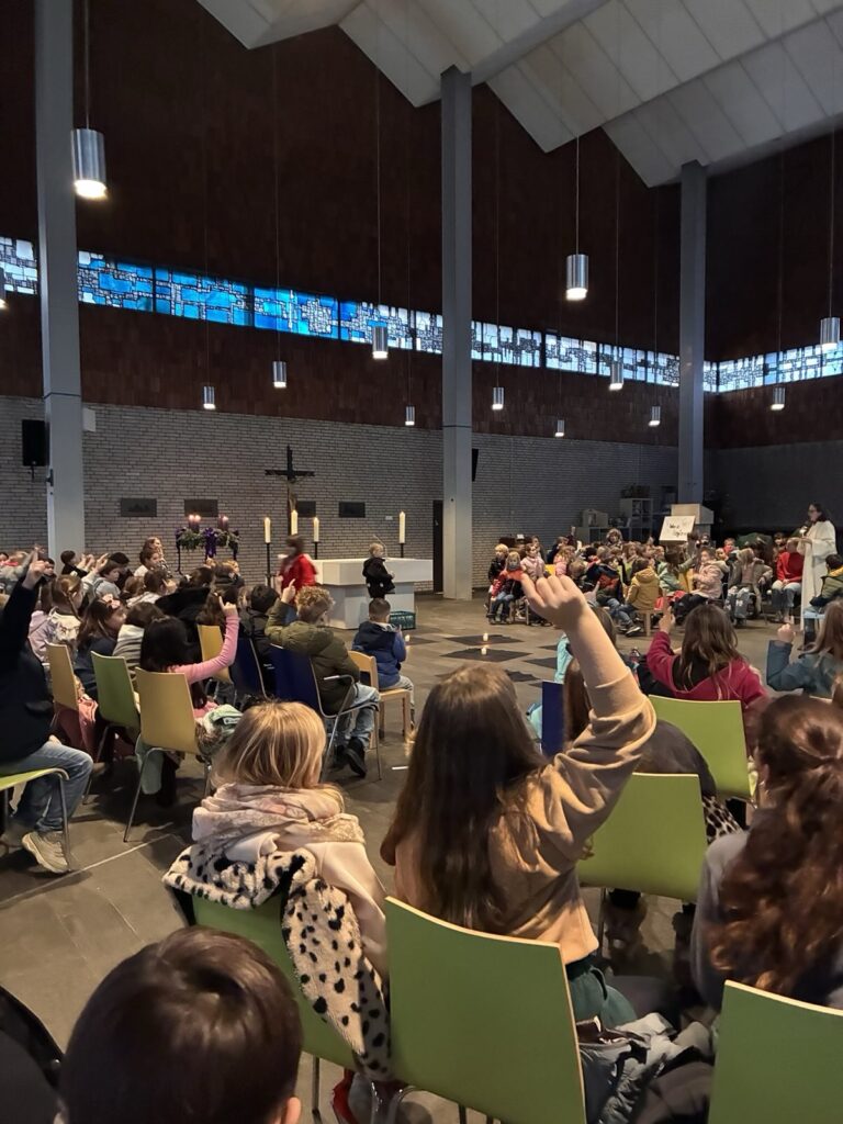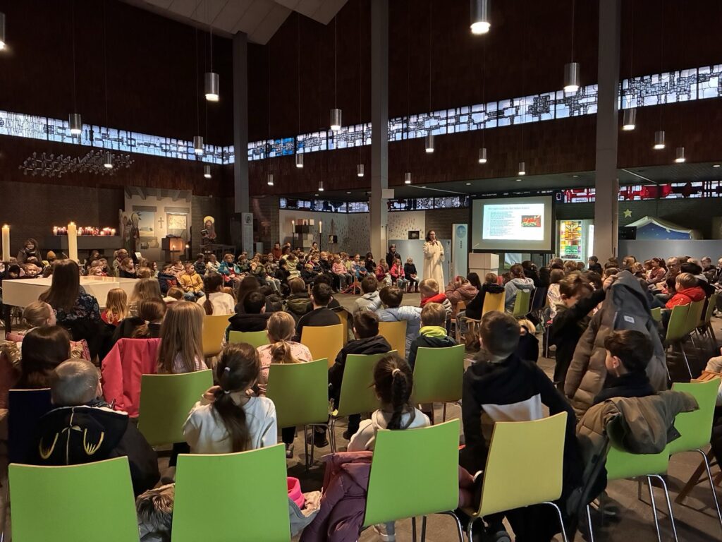 Im Rahmen eines ökumenischen Weihnachtsgottesdienstes kamen evangelische und katholische Kinder unserer Schule gemeinsam zusammen, um sich auf das Weihnachtsfest einzustimmen. Mit Liedern, der Weihnachtsgeschichte und Fürbitten der Schülerinnen und Schüler wurde die Botschaft von Gemeinschaft, Hoffnung und Frieden lebendig.