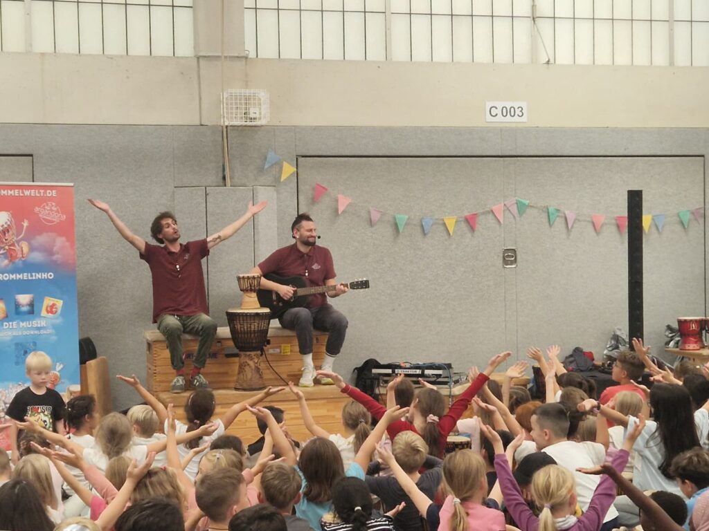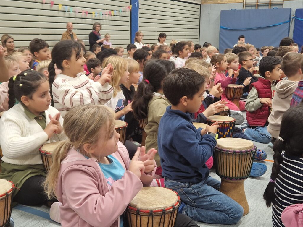 Mit den Musikern der „Argandona Trommelwelt“ erlebten die Kinder einen tollen Trommelworkshop am Vormittag und konnten ihre erlernten Lieder, Tänze und Trommeleinlagen ihren Eltern am Nachmittag in einem Konzert präsentieren.